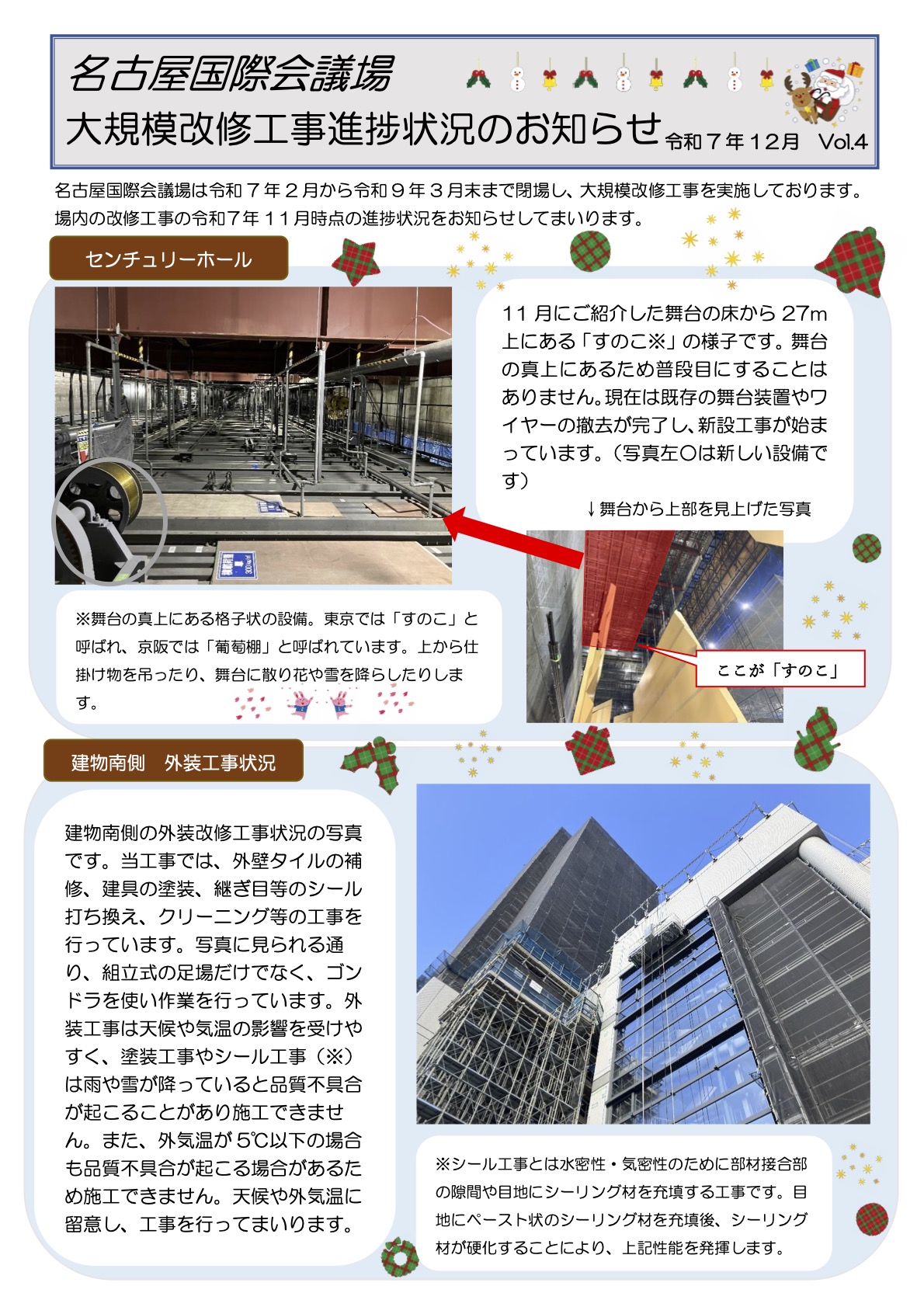 2025.12.03(水) お知らせ PDF版のダウンロードはコチラ 最新号含めたバックナンバーはコチラから 名古屋国際会議場 大規模改修工事進捗状況のお知らせ(2025年9月Vol.1) 名古屋国際会議場 大規模改修工事進捗状況のお知らせ(2025年10月Vol.2) 名古屋国際会議場 大規模改修工事進捗状況のお知らせ(2025年11月Vol.3) 名古屋国際会議場 大規模改修工事進捗状況のお知らせ(2025年12月Vol.4)