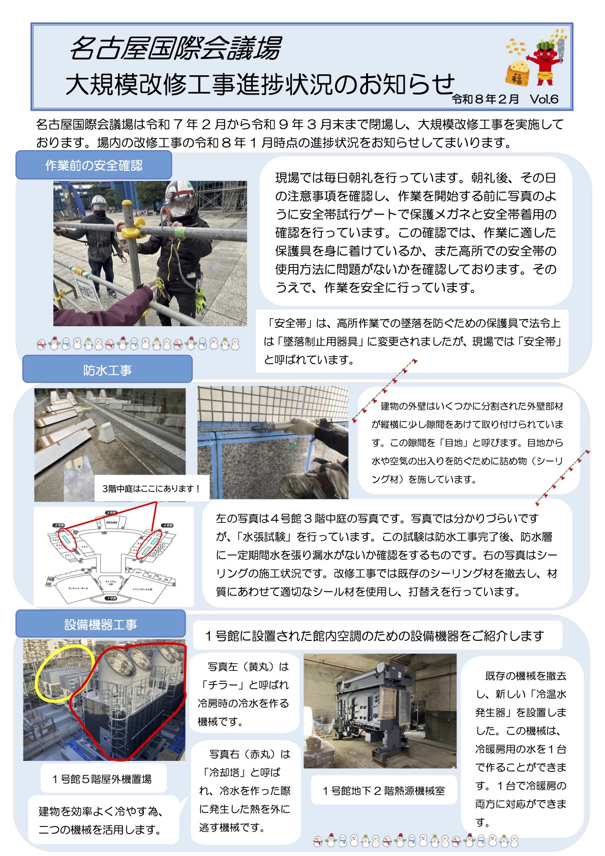 2026.02.06(金) お知らせ PDF版のダウンロードはコチラ 最新号含めたバックナンバーはコチラから 名古屋国際会議場 大規模改修工事進捗状況のお知らせ(2025年9月Vol.1) 名古屋国際会議場 大規模改修工事進捗状況のお知らせ(2025年10月Vol.2) 名古屋国際会議場 大規模改修工事進捗状況のお知らせ(2025年11月Vol.3) 名古屋国際会議場 大規模改修工事進捗状況のお知らせ(2025年12月Vol.4) 名古屋国際会議場 大規模改修工事進捗状況のお知らせ(2026年1月Vol.5) 名古屋国際会議場 大規模改修工事進捗状況のお知らせ(2026年2月Vol.6)