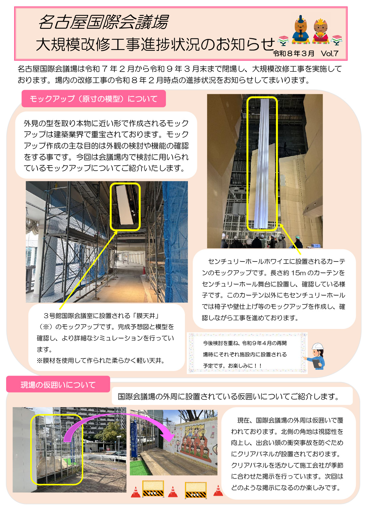 2026.03.12(木) お知らせ PDF版のダウンロードはコチラ 最新号含めたバックナンバーはコチラから 名古屋国際会議場 大規模改修工事進捗状況のお知らせ(2025年9月Vol.1) 名古屋国際会議場 大規模改修工事進捗状況のお知らせ(2025年10月Vol.2) 名古屋国際会議場 大規模改修工事進捗状況のお知らせ(2025年11月Vol.3) 名古屋国際会議場 大規模改修工事進捗状況のお知らせ(2025年12月Vol.4) 名古屋国際会議場 大規模改修工事進捗状況のお知らせ(2026年1月Vol.5) 名古屋国際会議場 大規模改修工事進捗状況のお知らせ(2026年2月Vol.6) 名古屋国際会議場 大規模改修工事進捗状況のお知らせ(2026年3月Vol.7)